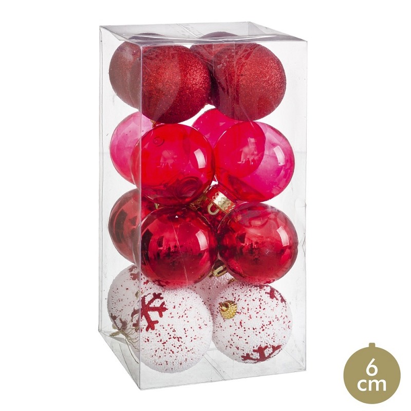 El set de 16 bolas de Navidad en distintos tonos de rojo es una opción ideal para darle vida y calidez a tu decoración festiva. Cada bola mide 6 x 6 x 6 cm y está fabricada en foam, lo que las hace ligeras y seguras para colgar. Este conjunto aporta un elegante contraste a tu árbol de Navidad, guirnaldas o centros de mesa, creando un ambiente acogedor y alegre. ¡Perfectas para celebrar la temporada navideña!