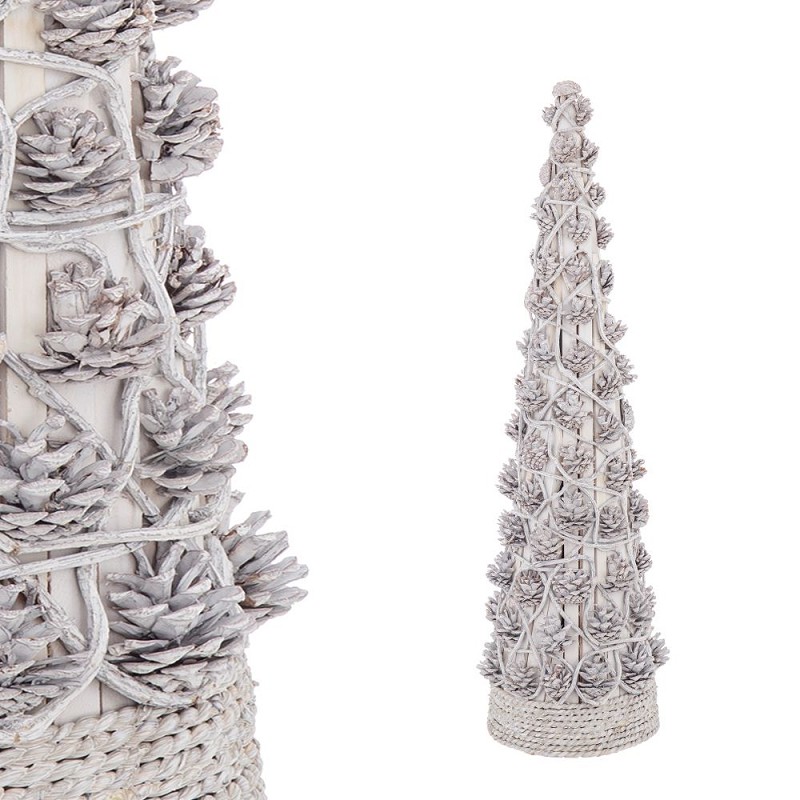 Ideal para cualquier estancia, más todavía si lo que quieres es conseguir una decoración sencilla, huilde, acogedora, y además, exclusiva, es este magnífico árbol de Navidad, con forma cónica, decorado con piñas, y un agradable aspecto nevado, disponible, además, en varios tamaños, para que puedas escoger el que mejor se adapte a tus necesidades....