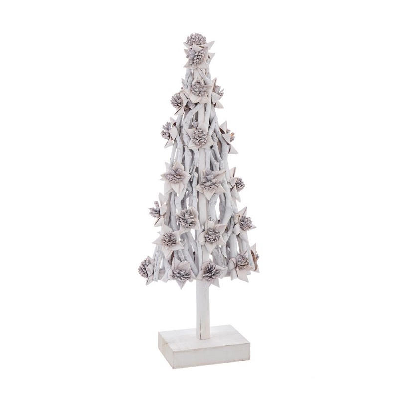Confeccionado en madera y decorado en pálidos y cálidos tonos blancos, te presententamos este original árbol de Navidad, con forma de triángulo, que seguro, quedará genial en tu salón estas próximas Navidades...