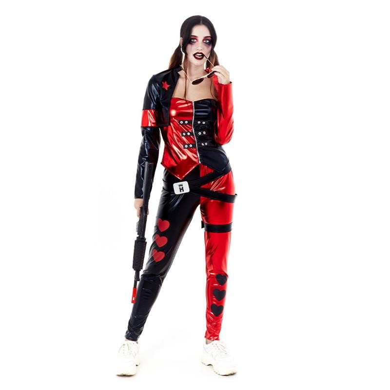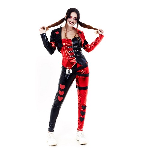 Un aspecto de malota total es el que tendrás con este increíble disfraz de bad girl para mujer, compuesto por top, pantalón, chaqueta y cinturón, disponible además, en tres tallas distintas. Sorprende a todos con tu aspecto en tu próxima fiesta de disfraces transformada en una auténtica villana, como si fueses la novia del Jocker!!