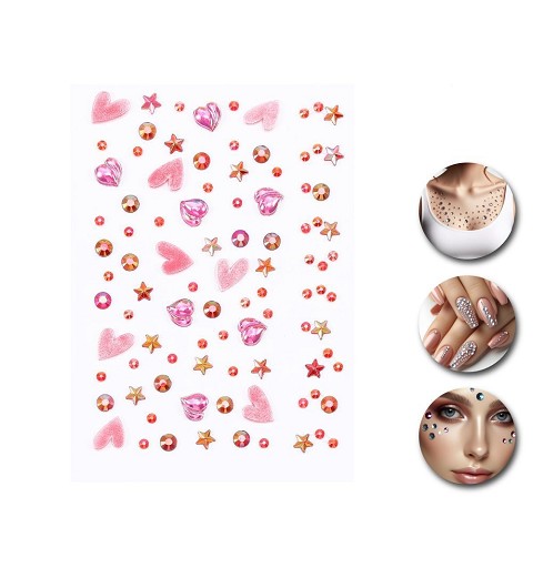 - 1 Sticker de Uñas/Cara/Cuerpo Corazones y Estrellas