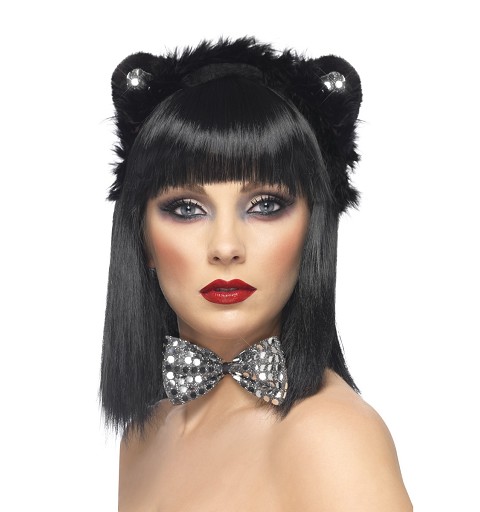 - 1 Set Gatito Negro Lentejuelas (diadema con orejas,pajarita)