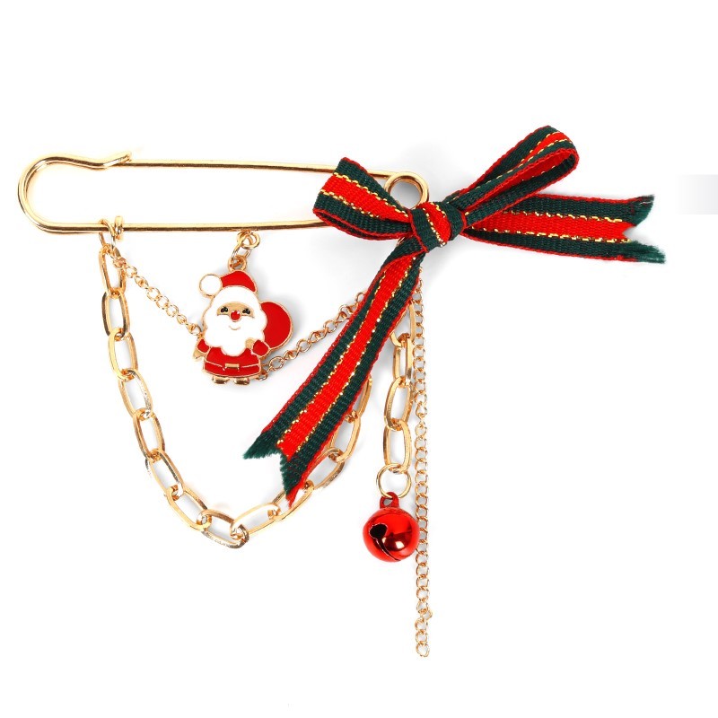 Broche Figuritas de Papa Noel, Lazo y Cascabel de Navidad con Cadenas.