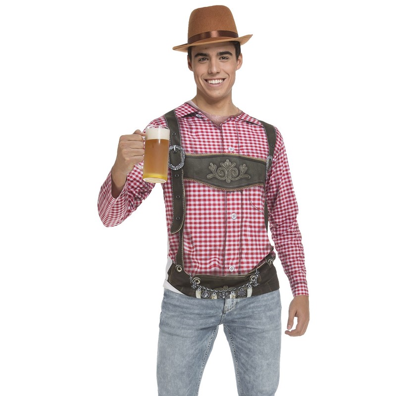 Pensando en el Oktoberfest o cuaquier fiesta de temática alemana, te ofrecemos esta cómoda y divertida camiseta para hombre, que con su estampado, imita una camisa a cuadros sobre la que van los tirantes del clásico Lederhosen. En tu próximo festival de la cerveza, seguro que darás el pego....