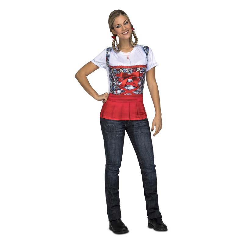 Una elección de lo más acertada para acudir al próximo Oktoberfest y disfrutar de una buena cerveza, es esta camiseta, que simula un corpiño, como los de los tradicionales trajes de Baviera y el Tirol.