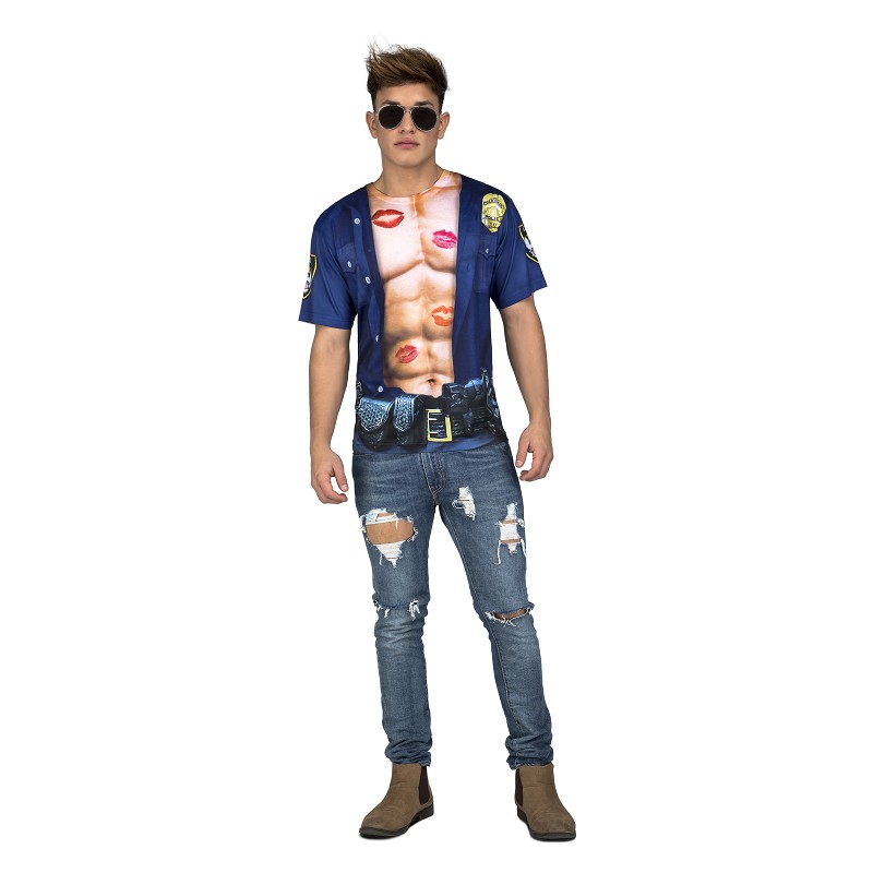 Seguro que nunca la ley te pareció tan atractiva como ahora!!! Para tu próxima fiesta de disfraces, o despedida de soltero, te proponemos esta divertida camiseta de policía, pero, además, musculoso, para que, además de autoritario, no te falte el toque sexy.