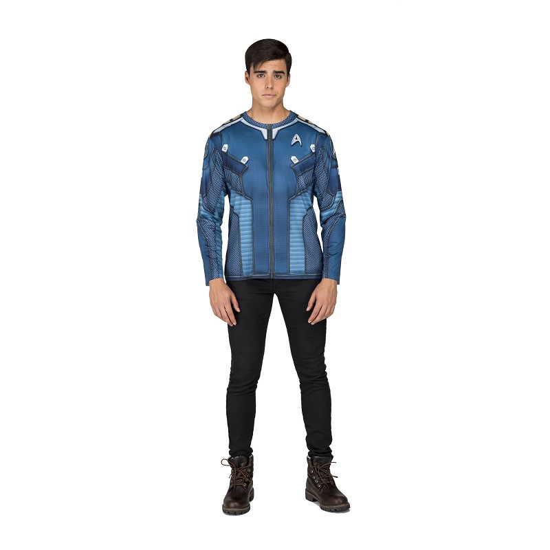 En MiDisfraz.com sólo quedremos darte facilidades y comodidad, para que sólo tengas que preocuparte de divertirte y pasarlo bien, por lo que, para tu próxima fiesta de disfraces, Carnaval o Halloween, te proponemos, si eres fan de la famosa saga Star Trek, esta camiseta estampada, para que te transformes rápidamente en Kirk, el capitán de la Enterprise