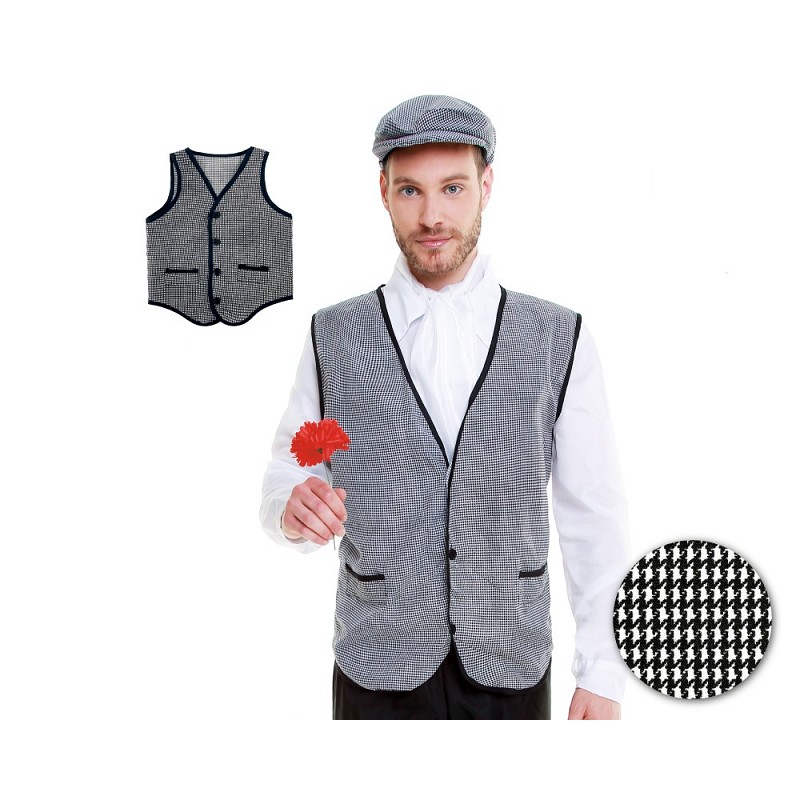 La vestimenta típica de los hombres para la fiestas de San Isidro consta de un pantalón oscuro y una camisa blanca, sobre la cual hay que ponerse un chaleco con cuadritos grises, al que se añade un clavel en la solapa, por lo que este chaleco es casi, casi, un elemento practicamente indispensable para esta próximas fiestas de San Isidro, y además, está disponible en varias tallas distintas: S, M, L y XL. Listo para convertirte en un auténtico chulapo???