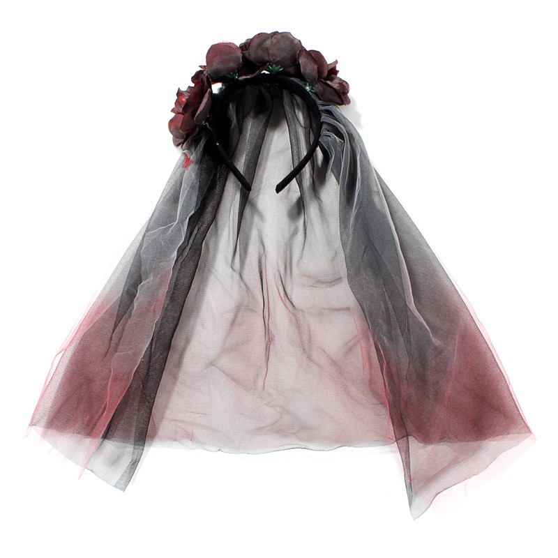 Más que perfecta para completar tu disfraz de novia cadaver, o para darle un toque especial a tu look este próximo Halloween, te presentamos esta diadema, con velo incorporado, y unas flores en la parte superior, todo con tonos oscuros, consiguiendo en conjunto un aspecto algo lúgubre y macabro, ideal para la noche de Halloween.....