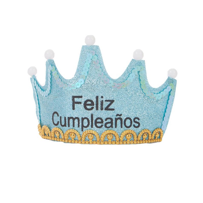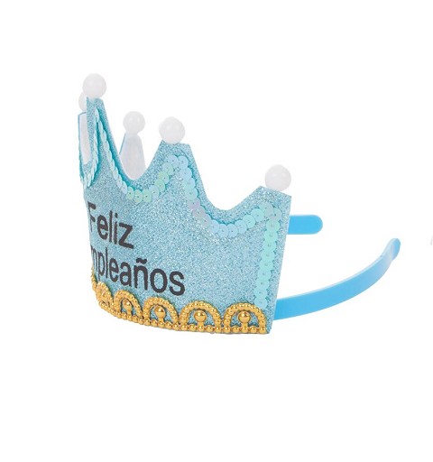 Diadema Corona Feliz Cumpleaños con Luz Azul