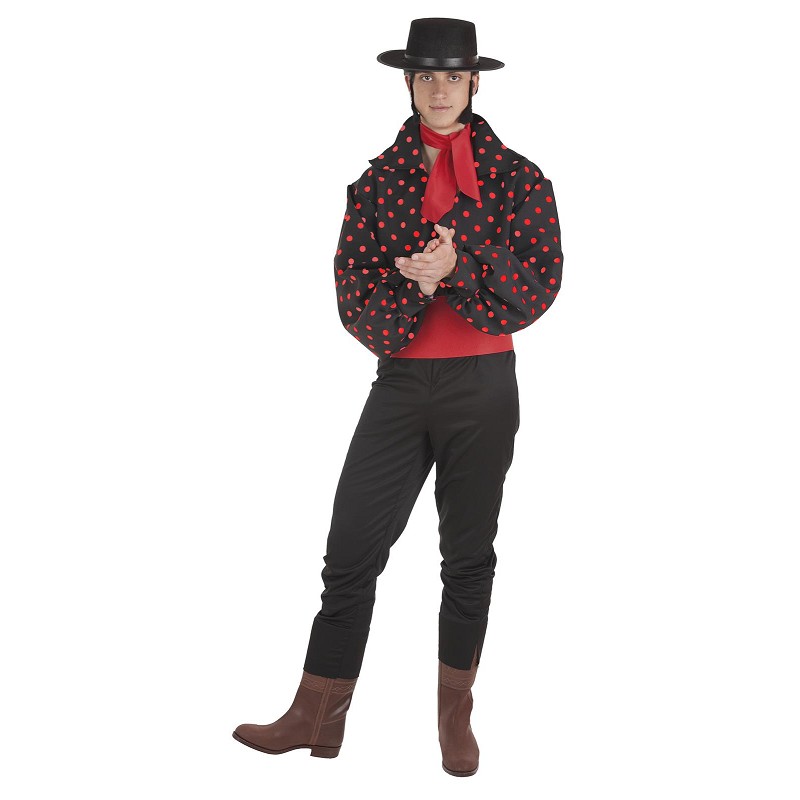 Este disfraz de gitano para hombre incluye cuatro piezas esenciales: pantalón, camisa, fajín y gorro. Está pensado para fiestas de temática flamenca, ofreciendo un estilo auténtico y tradicional. La camisa y el pantalón proporcionan comodidad, mientras que el fajín y el gorro completan el conjunto, reflejando la rica cultura andaluza, por lo que es ideal para eventos como ferias y celebraciones flamencas.