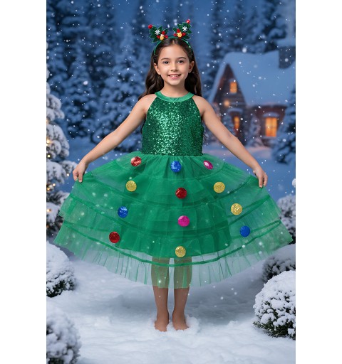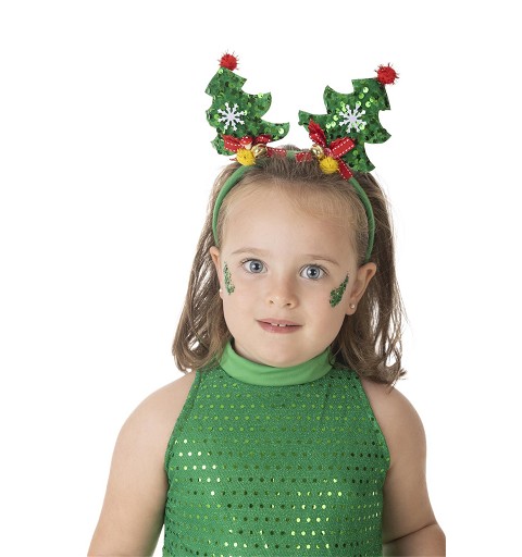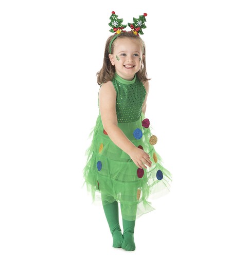 Ideal para acudir a fiestas Navideñas, funciones o representaciones tan típicas de estas fechas, te presentamos este original y divertido disfraz de árbol de Navidad para niñas, disponible en tres tallas distintas, para niñas de 3 a 9 años, que incluye vestido y diadema, y con el que tu pequeña estará la mar de graciosa. Este modelo también está disponible para mujer, por si os apetece ir iguales madre e hija.