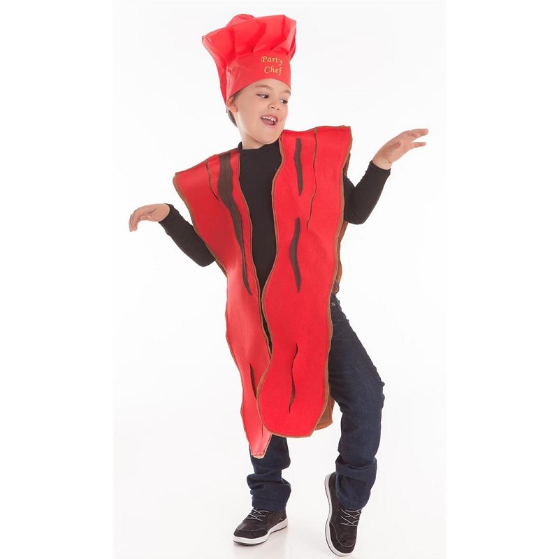 Un aspecto de lo más "sabroso" es el que tendrá tu peque con este original y divertido disfraz de bacon infantil, compuesto por vestido y gorro, que pueden ser surtidos, disponible en varias tallas y totalmente unisex. Sin duda, un disfraz de lo más "irresistible" para su próxima fiesta de disfraces, desfiles o carnaval.....