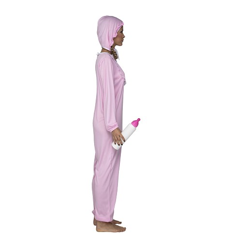 Compuesto por un mono de color rosa, a juego con su gorrito y babero, tenemos este divertido disfraz de bebé para adulto, con el que, en tu próxima fiesta de disfraces o carnaval, podrás sacar al bebé que llevas dentro. Tendrás un aspecto gracioso y divertido, requisitos indispensables para disfrutar de tu próxima fiesta!