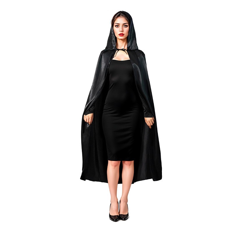 Disfraz de Capa con Capucha Satén Negra 120 cm