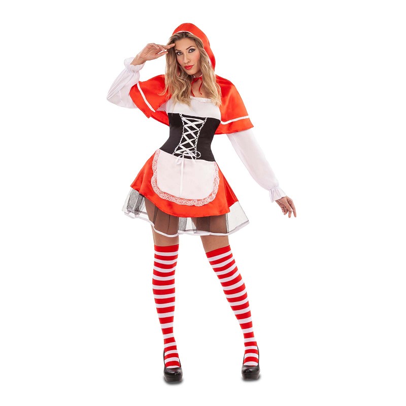 Para que le des la vuelta al cuento, o te inventes tu propia historia, te presentamos este disfraz de caperucita atrevida para mujer, con el que, con aspecto algo inocente, tendrás un look realmente sexy y atractivo, nada que ver con la ingenua y dulce protagonista del cuento.