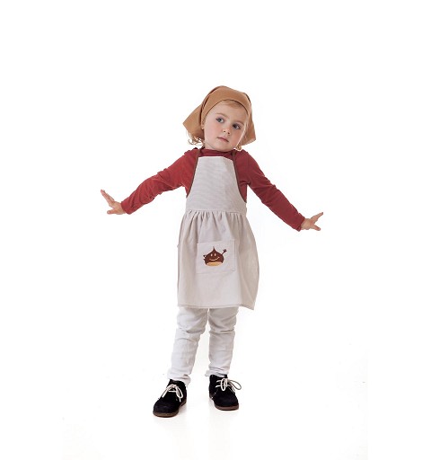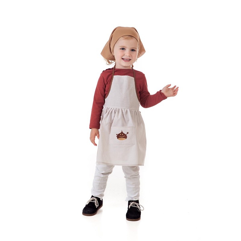 Más que perfecto para celebrar en el cole la fiesta de la Castañera, tan típica de otoño, es este precioso disfraz de castañera para niña, disponible en varias tallas, que van desde los 3 hasta los 13 años, compuesto por el pañuelo para la cabeza y el delantal con peto, que además, podrás personalizar con el nombre de tu pequeña, dándole un toque de lo más personal!!