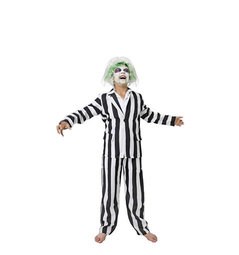 Este Disfraz de Fantasma Loco infantil, incluye chaqueta y pantalón y éstá disponible en varias tallas, que van desde los 5 a los 12 años, y está inspirado en el icónico personaje de Beetlejuice, la comedia de terror y fantasía dirigida por Tim Burton en 1988. Este es un disfraz llamativo y divertido para Halloween o fiestas temáticas que transportará a los más pequeños al mundo de este peculiar fantasma. Ideal para recrear la atmósfera de la película con estilo.