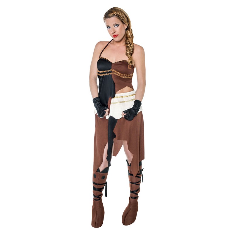 Si eres fan de la conocida serie Juego de Tronos, atrévete este próximo carnaval con este original y sexy disfraz de Guerrera Medieval Karle para mujer, compuesto de falda, top, mitones y cubrebotas, en color marrón y negro, y un corte desigual, inspirado en esta famosa serie, que imita al atuendo que lleva la reina Daenerys Targaryen, la madre de dragones. Con él, seguro que no pasas desapercibida....