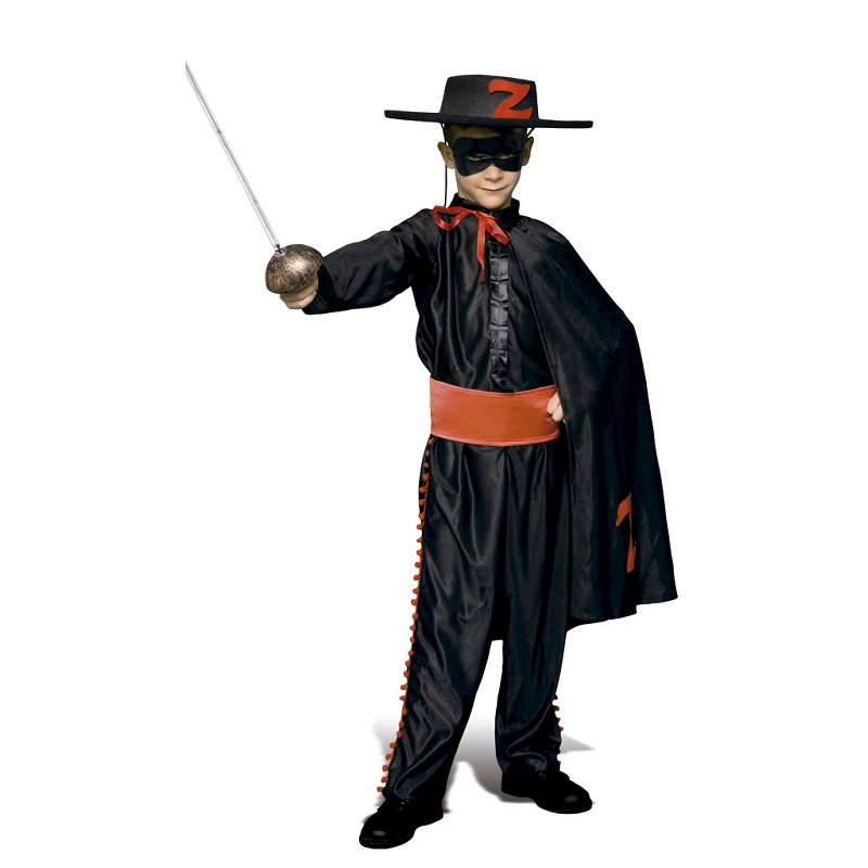 Todo de negro, capa incluida, pero con el fajín rojo y ocultando la mirada tras un enigmático antifaz, tu peque se sentirá todo un héroe. Un héroe enmascarado, seguro que sentirá valiente y temerario, como EL ZORRO....