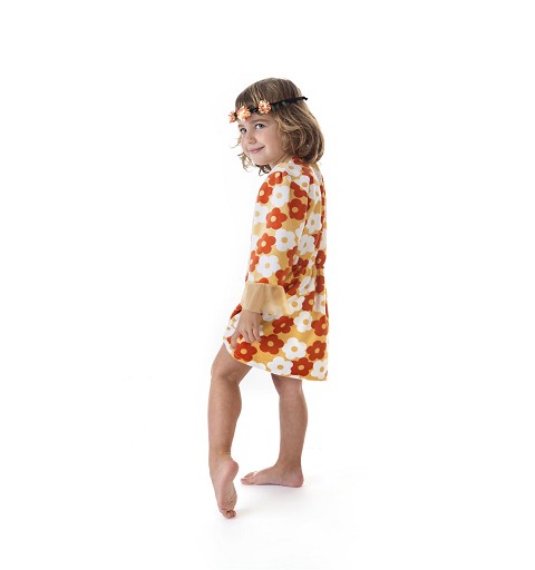 Un cómodo y coqueto vestido, como no, estampado con flores, componen ete disfraz de hippie para niñas, disponible de los 3 hasta los 13 años, y que tambíen te ofrecemos para bebés y mujeres, lo que lo convierte en una excelente elección para acudir en familia a vuestra próxima fiesta de disfraces, temática o de carnaval....