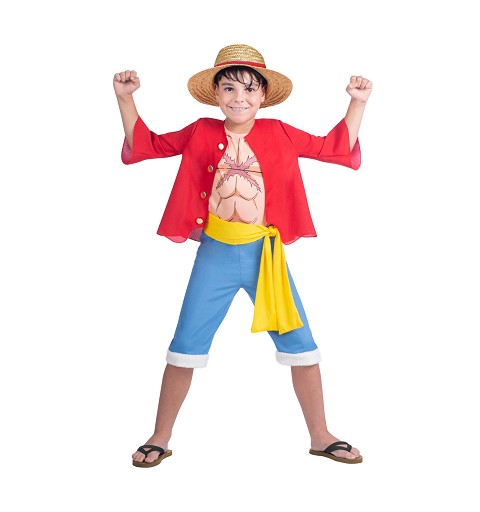 Deja que tu peque, de 2 a 12 años, se transforme en el valiente capitán Luffy, de One Piece con este divertidisimo disfraz de Luffy para niños, compuesto por sombrero de paja, algo muy simbólico y caracterísico de este personaje, camiseta, chaqueta, pantalón y fajín, ideal para deslumbrar a todo el mundo en su próxima fiesta de disfraces, temática, evento cospley o cualquier otro evento que tenga a la vista. Sin duda, será un acierto más que seguro!