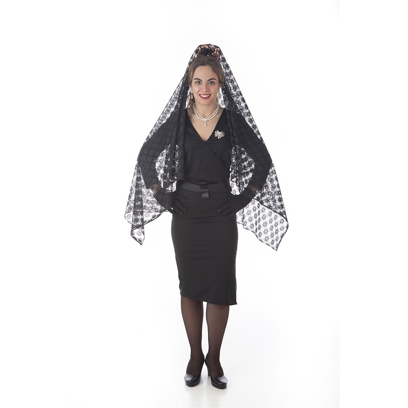 Este disfraz de Manola para adulto está compuesto por varias piezas, todas ellas clave, como son falda, camisa, teja, mantilla, cinturón y medias, evocando la esencia de la cultura española, todo en color negro, que aporta además un aire de misterio y sofistificación, lo que hace de este disfraz una elección ideal para eventos, fiestas temáticas o celebraciones especiales, y que puedes completar con algún broche, pendientes o collar, que podrás encontrar en nuestra sección de complementos, así como este modelo para niñas, ideal para ir madre e hija idénticas....