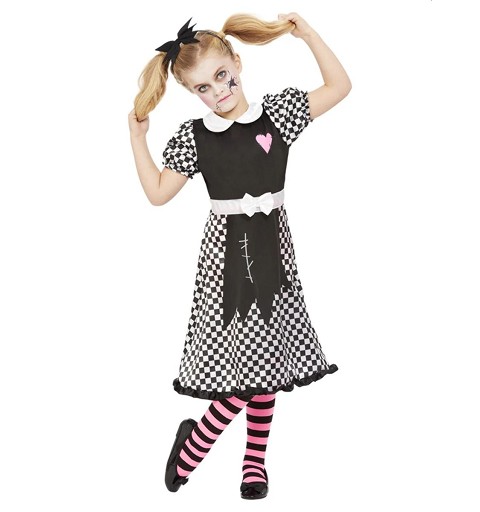 Seguro que en algún momento has visto a tu pequeña como una adorable muñequita, ¿a que si??? Pero con este disfraz de muñeca, tendrá un aspecto como roto, roido, y que, si lo completas con un buen maquillaje, se convertirá en una excelente combinacíon, una elección más que perfecta para el próximo Haloween.....