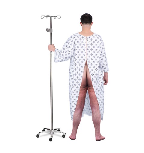 Este disfraz de paciente de hospital para adultos es totalmente unisex, e incluye la típica bata de hospital y unas logradas mallas, que imitan a la perfección el culete, apto sólo para personas con buen sentido del humor, ya que, cuando te vean de espaldas, la reacción de los demás asistentes será totalmente impredecible...