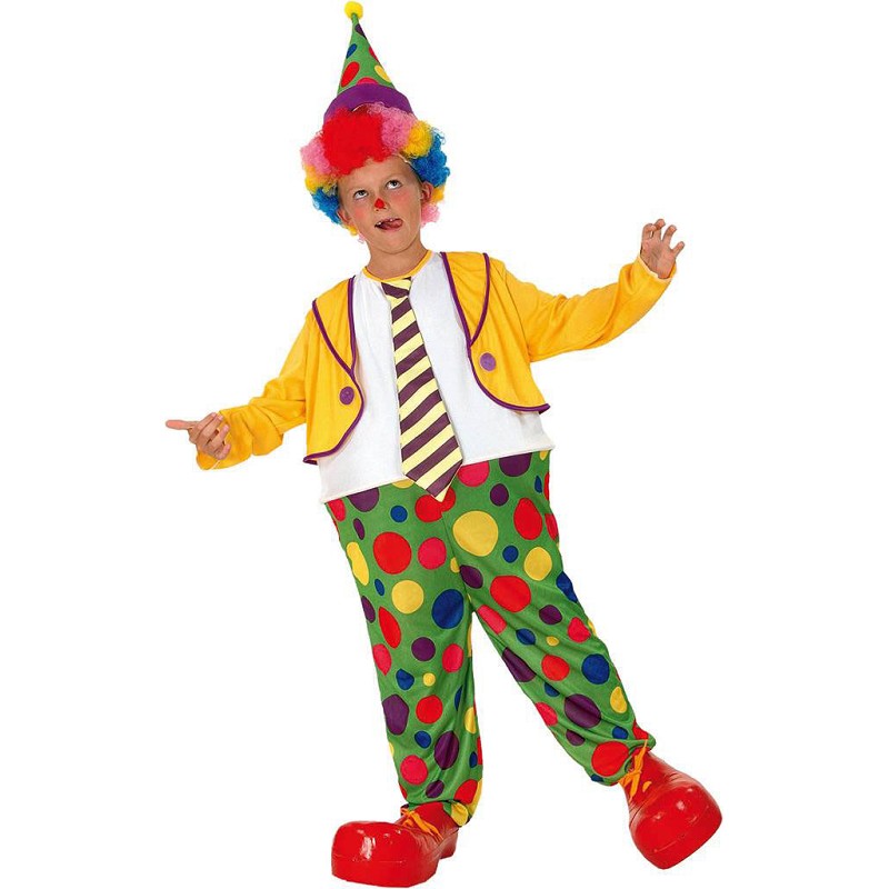 Alegre, divertido y desenfadado es este disfraz de payaso para niño de 5 a 6 años, compuesto de un mono con aro, a juego con el sombrero, y todo de vistosos y llamativos colores. Un disfraz que seguro que les encantará a los niños, y que nunca, nunca, pasará de moda, ya que los payasos son unos personajes muy queridos, tanto por grandes como pequeños....