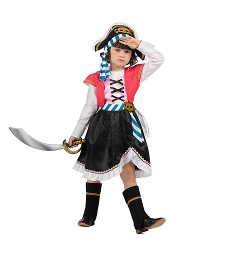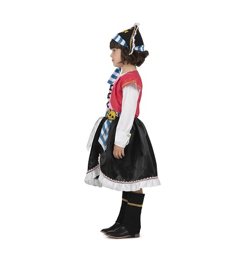 Este Disfraz de Pirata con Falda para Niña está pensado para pequeñas valientes y aventureras. Incluye camisa con corpiño, chaleco, cinturón, falda y cubrebotas, consiguiendo en conjunto un look realmente encantador. Está disponible en varias tallas, que van desde los 3 hasta los 12 años, y es más que ideal para carnaval, fiestas de disfraces, funciones escolares o juegos de rol, ya que este conjunto hará que las niñas se sientan guapas, valientes y más que listas para zarpar y disfrutar de emocionantes aventuras. ¡Un diseño único que hará destacar a tu pequeña en cualquier ocasión!