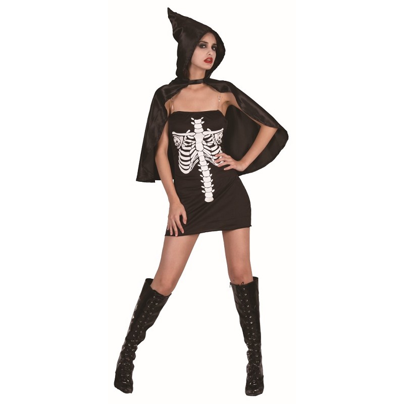 ¿Cómo un vestido tan sencillo puede decir tanto? Minivestido negro palabra de honor con esqueleto humano estampado en color blanco flúor. El disfraz de skeletina es ideal para una noche de Halloween de lo más versátil. Esmérate con los complementos y verás como se mueren por tus huesos.