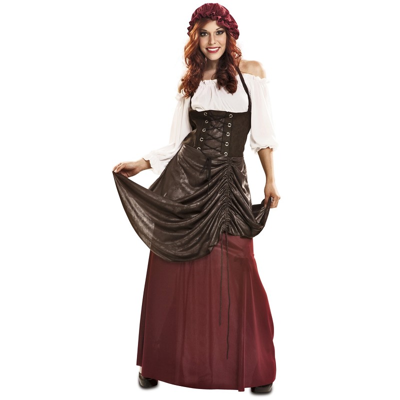 Pensado para fiestas de disfraces, Carnaval, pero sobre todo, fiestas de temática medieval, te presentamos este disfraz de tabernera para mujer, con el que parecerás estar detrás de la barra, en la taberna, sirviendo bebidas!!!!
