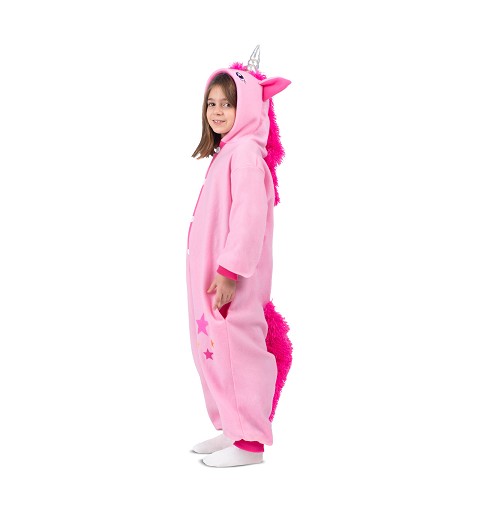 Todo en color rosa, y estilo pijama, te presentamos este cómodo y gracioso disfraz de unicornio, disponible en talla única, que va de 7 a 10 años, compuesto por un simple mono, con el que tu pequeña disfrutará del próximo carnaval cómoda y calentita....
