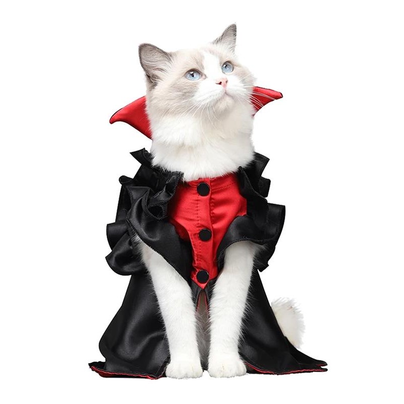 Si estas buscando un look de lo más original para que tu pequña mascota sorprenda a todos este próximo Halloween, te presentamos este encantador disfraz de vampira para gatos o perros, compuesto por un vestido con cuello, simulando un atuendo gótico y vampírico, con el que tu pequeña mascota estará increíblemente encantadora....