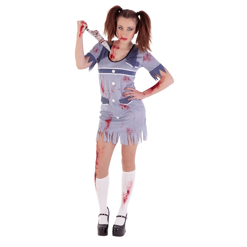 A veces, la EGB la recordamos con nostalgia, pero....en Halloween todo puede transformarse, y, con un simple vestido como este, puedes pasar de ser una alumna dulce y ejemplar a convertirte en la "Asesina de la EGB". Se trata de un disfraz sencillo, pero llamativo, y que dará que hablar. Sin lugar a duda, tu entrada en la fiesta será más que espectacular.....