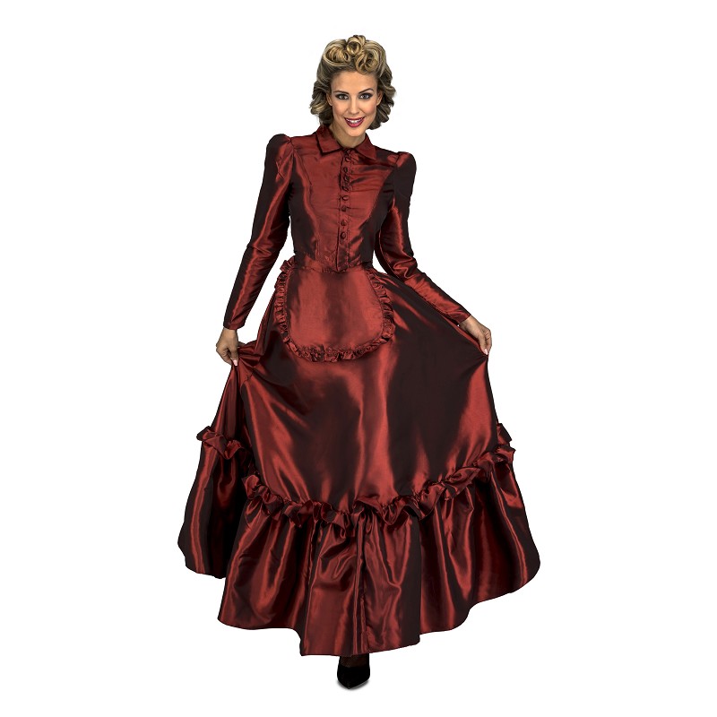 Estilo a "Lo que el viento se llevó" es este disfraz del oeste para mujer, disponible en talla única, y compuesto por camisa, falda, enagua y delantal. Parecerás la mismísmia Escarlata O´Hara, y seguro que dejarás a todos impresionados en tu próxima fiesta de disfraces, temática, o de carnaval.