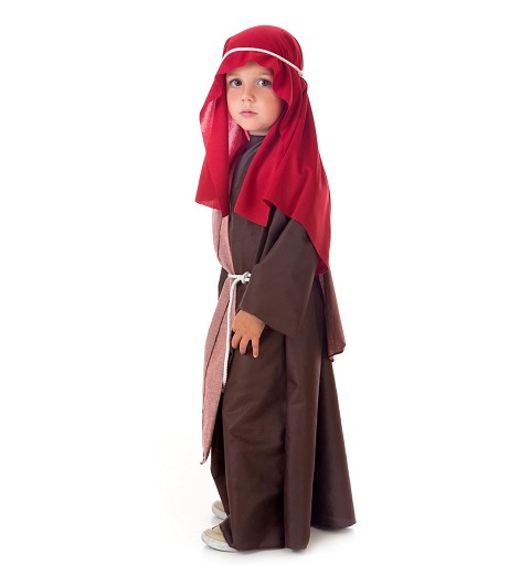 Este Disfraz de Hebreo Burdeos Infantil, está disponible en varias tallas, e incluye una túnica de tono burdeos, un manto a juego, cordones y un pañuelo para la cabeza, consiguiendo un completo y auténtico, por lo que es ideal para funciones navideñas, belenes vivientes y representaciones escolares, ya que su diseño tradicional y cuidado es perfecto para recrear el ambiente de la época. Fabricado con materiales cómodos y de calidad, garantiza que los niños se sientan cómodos.