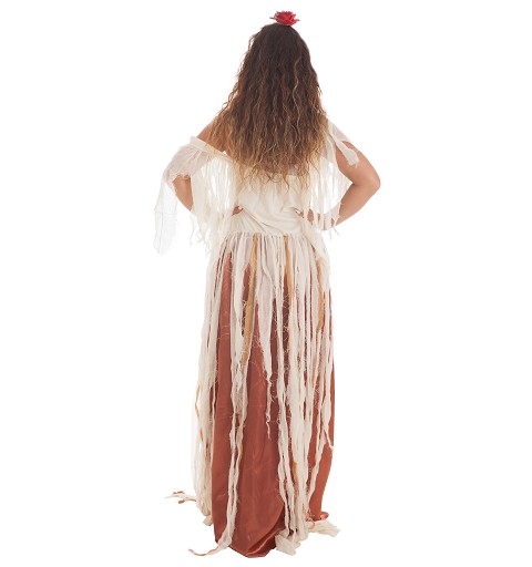 Si estás buscando un buen disfraz para Halloween, sobre todo, si vas en pareja, te proponemos, que, en tu próxima fiesta, aparezcas como una auténtica novia, pero, nada de bella y radiante, sino, más bien, con semblante triste y sombrío. Con algo de maquillaje y este disfraz de novia zombie, compuesto por vestido y velo, parecerás un auténticoser del más allá.....
