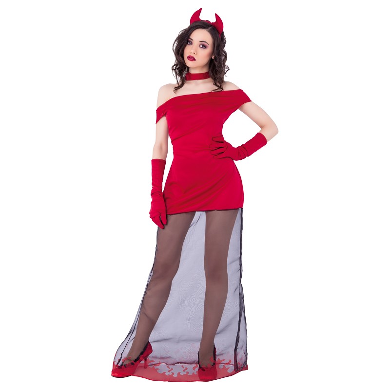 Algunos grupos religiosos dicen que Satán es un ángel que cayó en desgracia con Dios, llevando a la humanidad a los caminos del pecado, por lo que, si hablamos de tentación, tenemos tu disfraz perfecto: el de satanasa, formado por un precioso vestido rojo con cuello de barca, falda transparente larga, y un acabado precioso. Además, se incluyen guantes, gargantilla y una diadema con cuernos. Es un disfraz tentador, sexy y atractivo, como el mismísimo Satan....