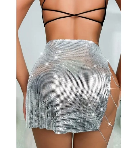 - Falda Malla Metálica Plata Ajustada Cadenas