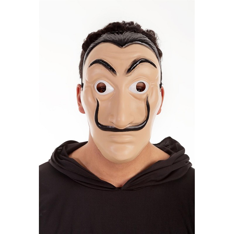 Si estás buscando una máscara con la que darle un toque diferente a tu disfraz, bien para tu próxima fiesta de disfraces, o de Halloween, y buscas algo de moda, y de plena actualidad, te proponemos esta máscara, que con su bigote a lo Dalí, es como la utilizada durante el atraco a la Fábrica Nacional de Mondea y Timbre en la conocidad serie de la Casa de Papel.