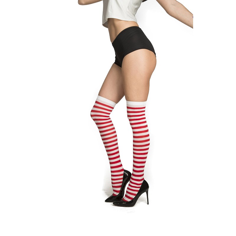 Tienes los disfraces de elfo preparados para acompañar a Papá Noel y no sabes que medias ponerle para que sea realmente auténtico?? En MiDisfraz.com tienes un gran surtido de medias, entre las que están estas medias de Rayas Rojas Y Blancas, ideales para Carnaval y Halloween y además puedes cambinar los colores, claro que sí!!!!