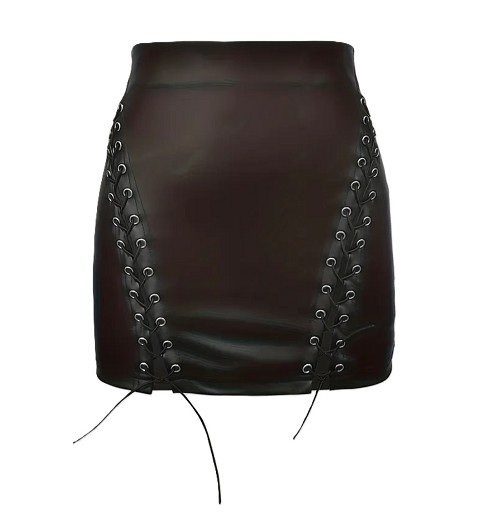Minifalda Cuero Pu Elástico Negro, Aberturas Cordón T-S