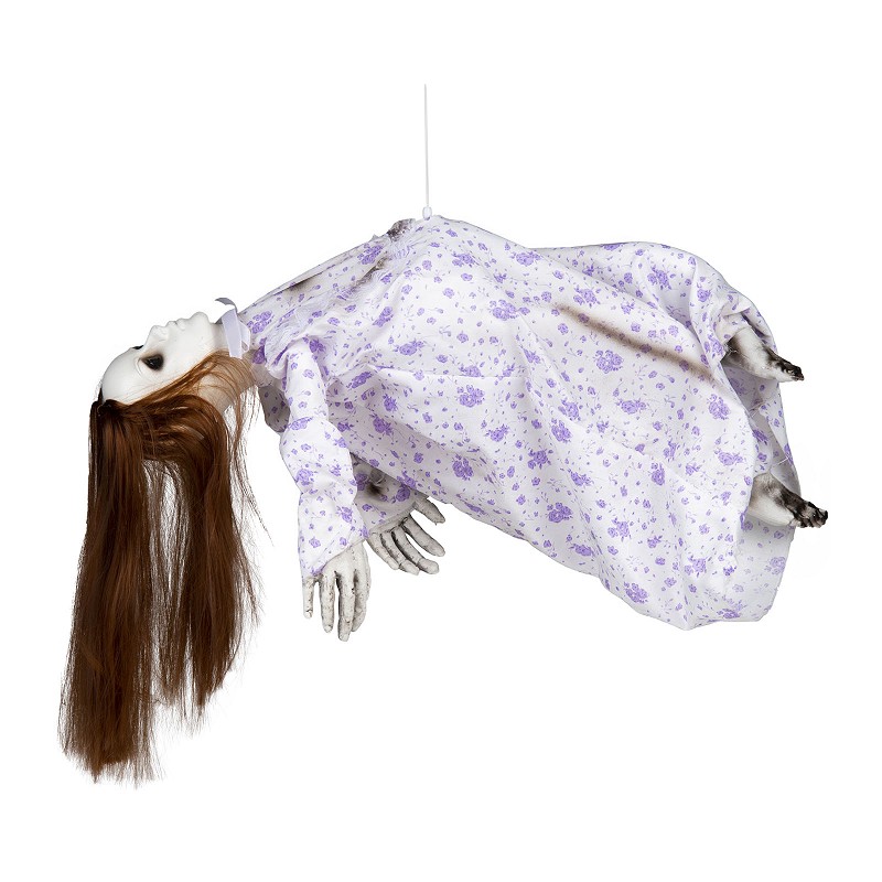 Perfecta para colocar en cualquier espacio, ya sea en tu casa, fiesta o escaparate, te presentamos esta Niña Levitando con Luz, Sonido y Movimiento, un accesorio que aportará un toque sobrenatural a tu celebración, perfecta para conseguir una decoración impactante para Halloween. Con efectos de levitación, esta figura espeluznante emite luces tenebrosas y sonidos aterradores, creando una atmósfera verdaderamente inquietante. Este es un detalle macabro y único que dejará a todos tus invitados sorprendidos y aterrados.