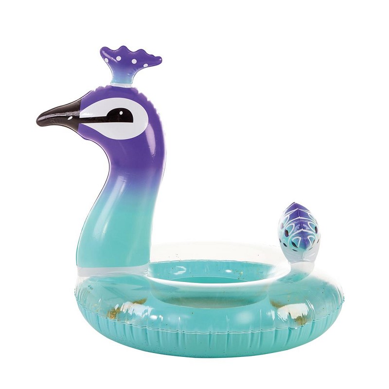 El pavo real es un ave realmente bella y popular, famoso por su belleza sin inigual, elegancia y esplendor, lo que convierte a este animal en un ave realmente especial, y que no pasa desapercibida en ningún lugar, al igual que te pasará a ti este verano con este fantástico y bello flotador hinchable con forma de pavo real, y decorado, además, con purpurina dorada en su interior.