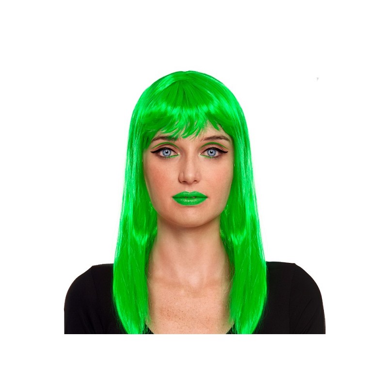 Si estás buscando como conseguir un aspecto divertido y original, esta peluca larga con flequillo, de un llamativo color verde, te aportará además, un toque vibrante, ideal para lucir un look único y lleno de personalidad en tu próxima fiesta de disfraces o evento...