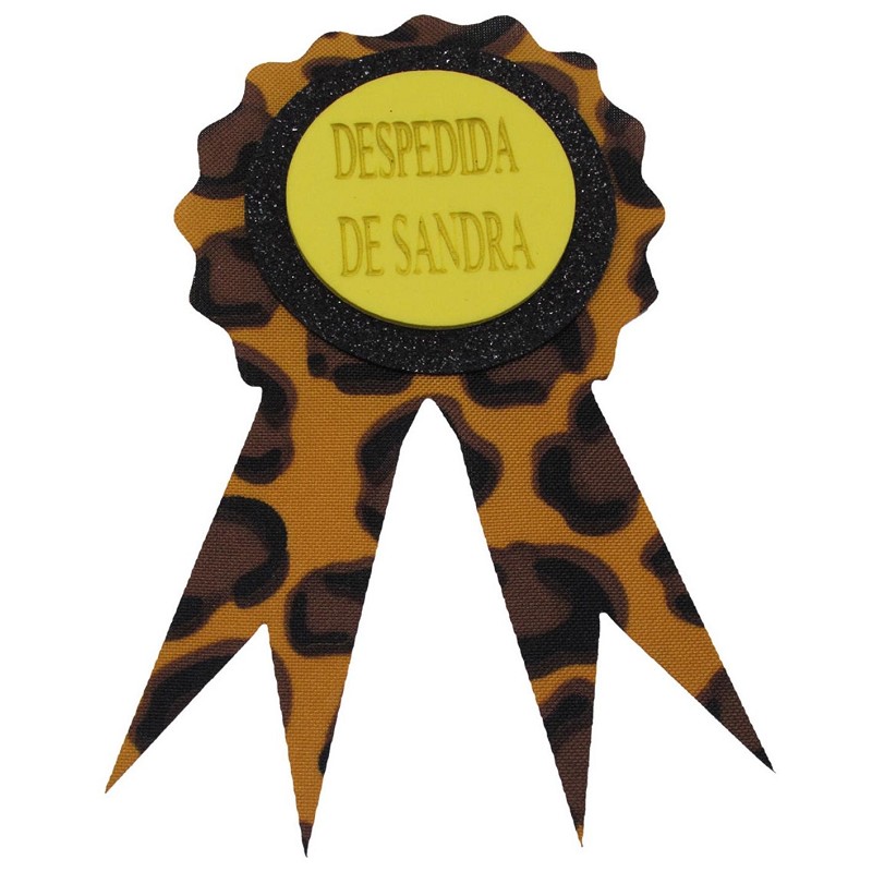 Si lo que buscas es un detalle audaz, pero a la vez personal, para destacar en tu próximo evento o celebración especial, te presentamos este pin de lopardo. Tiene un llamativo diseño, está hecho de goma eva y tela, combinando así un gran estilo. Su tamaño es de 15 x 8, y lleva un imperdible en la parte trasera, y que además, podemos grabar con el nombre o frase que nos indiques, convirtiéndolo así en un dellate realmente único y significativo para tu próximo evento.