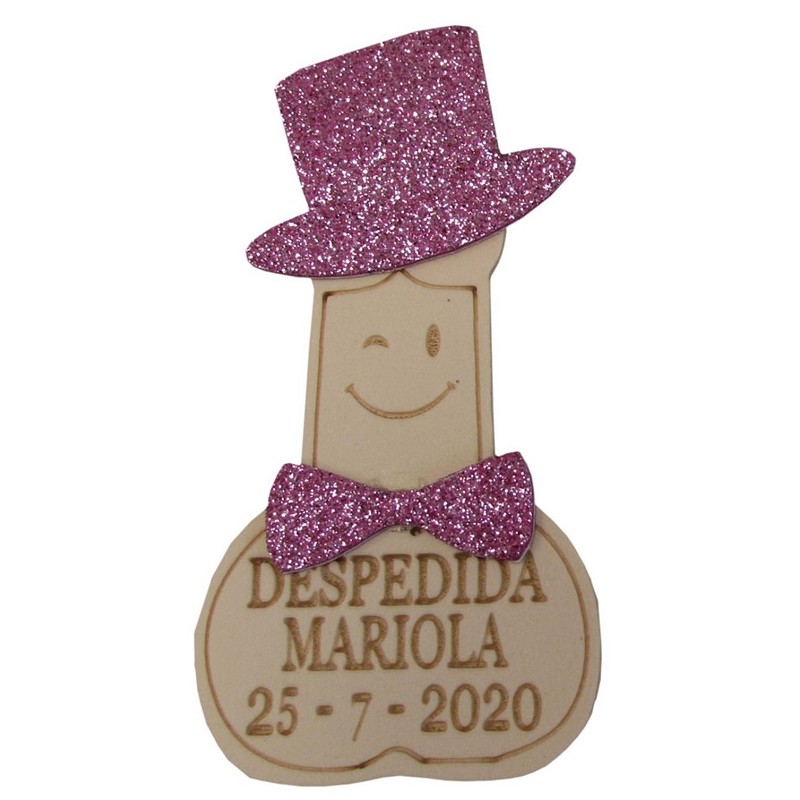 Este es un pequeño pero divertido y llamativo accesorio pensado para las amigas de la novia en su despedida de soltera. Se trata de una pilila decorada con goma eva de color fucsia, con unas medidas de 12.5 x 6.5 cm y un imperdible en la parte trasera que podemos personalizar con el nombre o frase que nos indiques, transformándolo en un recuerdo realmente único y personal para una ocasión de lo más epecial....
