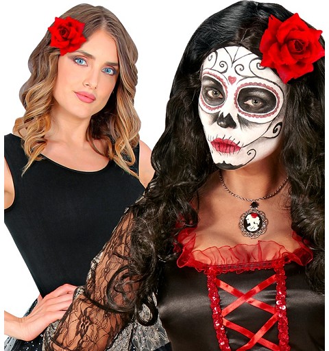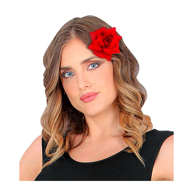 - Flor Rosa Roja con Pinza y Broche.